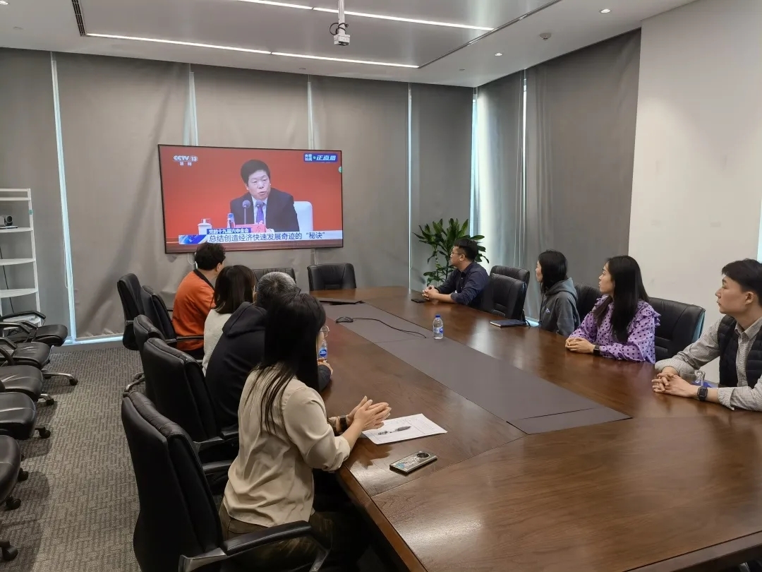 11月12日上午10時,中共中央舉行新聞發(fā)布會,介紹黨的十九屆六中全會精神,并答記者問。中化塑料組織公司全體黨員干部收看新聞發(fā)布會現(xiàn)場直播,認真學(xué)習(xí)領(lǐng)會全會精神,全面掀起學(xué)習(xí)宣傳貫徹全會精神的濃厚氛圍。