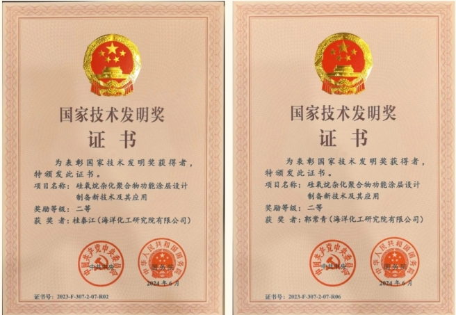 中國(guó)中化所屬海洋化工研究院有限公司(簡(jiǎn)稱“海化院”)等單位完成的“硅氧烷雜化聚合物功能涂層設(shè)計(jì)制備新技術(shù)及其應(yīng)用”項(xiàng)目榮獲2023年度國(guó)家技術(shù)發(fā)明獎(jiǎng)二等獎(jiǎng)。