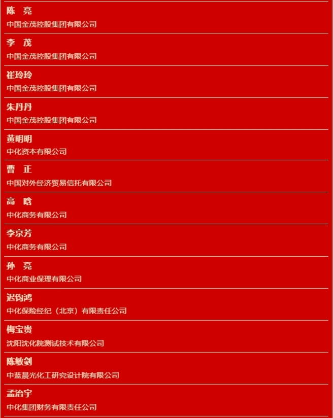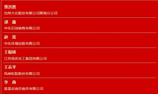 發(fā)布時(shí)間:2024-07-26 中國(guó)中化2023年度評(píng)優(yōu)獲獎(jiǎng)名單公布 科技創(chuàng)新獎(jiǎng) 突出貢獻(xiàn)獎(jiǎng) 卓越運(yùn)營(yíng)獎(jiǎng)(精益管理方向) 卓越運(yùn)營(yíng)獎(jiǎng)(HSE方向) “四好”領(lǐng)導(dǎo)班子 勞動(dòng)模范 年度優(yōu)秀個(gè)人