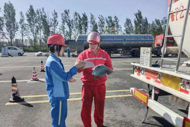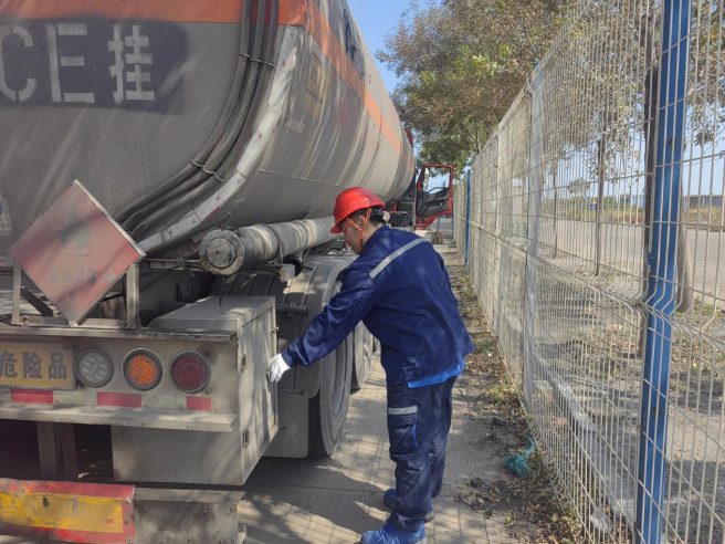國慶期間,中化天津石油員工堅(jiān)守在工作崗位上,仔細(xì)檢查入庫車輛輪胎、靜電接地線等各項(xiàng)安全措施,以確?,F(xiàn)場作業(yè)安全。