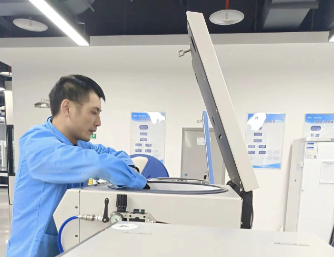 國慶期間,楊凌技術(shù)中心分子檢測實(shí)驗(yàn)室的科學(xué)家正在操作離心機(jī),以篩選出合格的育種材料。