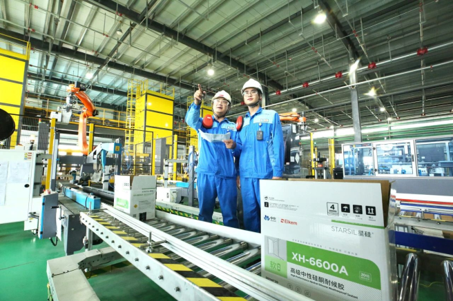 國慶期間,在??闲腔鹩袡C(jī)硅四分廠特種密封膠生產(chǎn)車間里,一支支密封膠有序傳動(dòng),機(jī)械臂自動(dòng)封包……從生產(chǎn)一線到項(xiàng)目工地,??闲腔鹑藞?jiān)守崗位,忙生產(chǎn)、保安全。