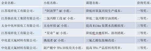 今年5月,中國石油和化學(xué)工業(yè)聯(lián)合會啟動了年度優(yōu)秀QC小組和先進企業(yè)評選活動,各生產(chǎn)企業(yè)積極組織并選送優(yōu)秀的QC小組成果參評。經(jīng)過全國行業(yè)專家和質(zhì)量專家的集中評選,中化國際下屬企業(yè)江蘇揚農(nóng)化工集團有限公司、江蘇瑞祥化工有限公司共3個QC小組獲“2018年度中國石油和化工行業(yè)優(yōu)秀QC小組”稱號。同時獲得該榮譽稱號的,還有同屬中化集團化工事業(yè)部下屬的太倉中化環(huán)?;び邢薰尽⒅谢{天氟材料有限公司。