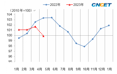3月份,我國化工行業(yè)綜合景氣指數(shù)值終值為101.7,與2月份相比上漲0.7個百分點,4月份,化工市場在需求低迷、供應(yīng)收緊和月初原油拉漲等多重因素影響下,化工價格整體跌多漲少,測算到綜合景氣指數(shù)初值僅為99.9點,較3月份下降1.8點。